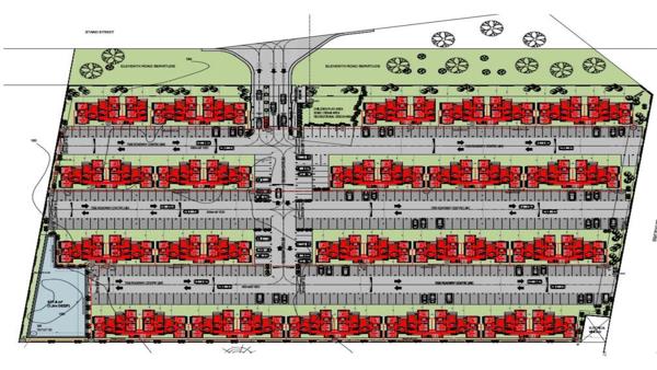 Efficient internal road network and parking layout