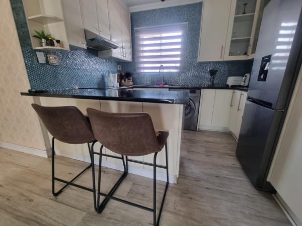- Open plan kitchen with granite tops, counter space as well as cupboard space, with washing machine connection.
