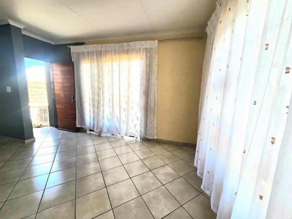 Outside, the property presents a significant opportunity for custom landscaping. The large, unlandscaped garden area allows you to design your dream outdoor oasis, perfect for relaxation or entertaining. With two dedicated parking spaces and a totally walled perimeter, the property ensures both convenience and security. Enhanced safety features include burglar bars on windows and a robust security gate, providing peace of mind.