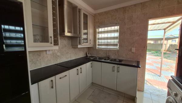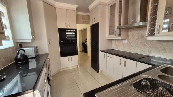 The modern kitchen is designed with both style and practicality in mind. It flows seamlessly into the dining room and then into the lounge, creating a welcoming space for family time and entertaining guests.