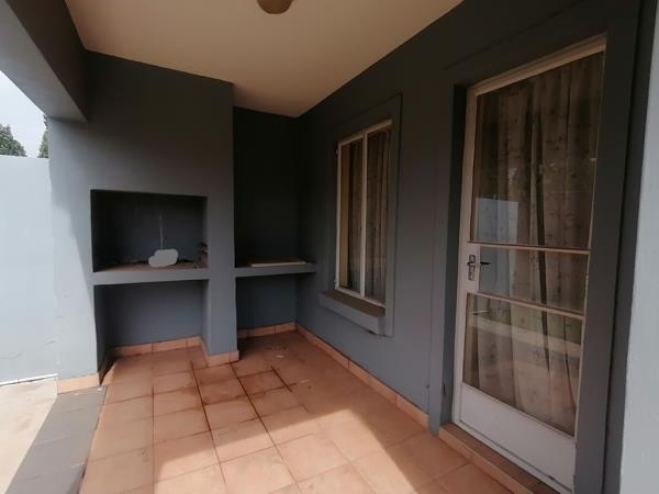 Open plan lounge, dining room and kitchen, extra storage cupboard in kitchen which is always handy to have. Lounge leads out to your own private patio with a built in braai, lovely to entertain your firends over the holidays and situated privately.
