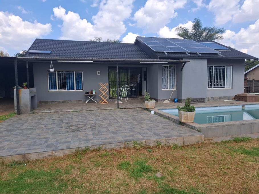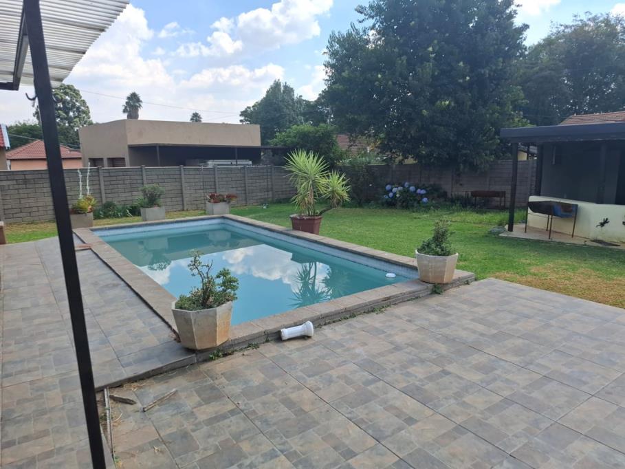 Outdoor living is equally impressive, with a patio that opens onto a spacious garden and a sparkling blue swimming pool, ideal for relaxation and recreation. The dedicated lapa, complete with a toilet and electricity points, offers an excellent space for entertaining guests. Parking is abundant, featuring a Hollywood Garage for two vehicles and an additional carport accommodating three more, ensuring ample space for residents and visitors alike. Pets are also welcome in this family-friendly environment.