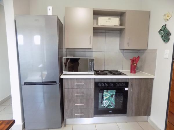 A standout feature of this property is its open-plan design, seamlessly connecting the kitchen and lounge area. This modern layout creates a bright, airy, and welcoming living space that is perfect for both everyday living and entertaining. The kitchen is well-positioned and functional, offering sufficient cupboard space and room for appliances, while flowing naturally into the lounge. This creates a cozy yet spacious area where family and guests can comfortably gather.