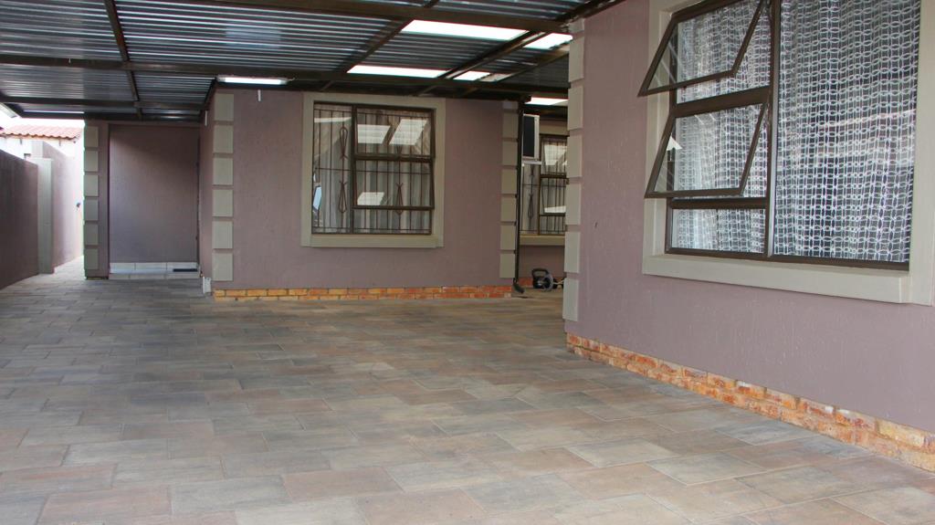 The entire yard is fully paved and low maintenance, and the property offers a carport that can accommodate up to four vehicles. There is also a built-in braai stand for outdoor entertaining, as well as an external storage room for added convenience.