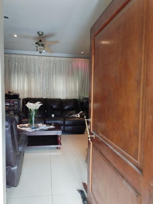On the ground floor, the home boasts three spacious bedrooms, all fitted with built-in wardrobes. The main bedroom features a private en-suite bathroom complete with a bathtub, basin, and toilet, while the remaining bedrooms are well-sized and filled with natural light.