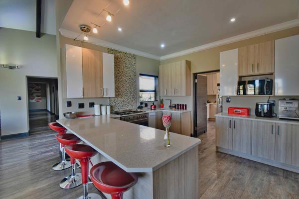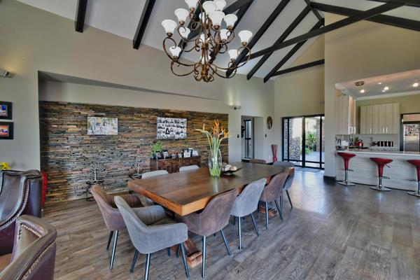 The modern kitchen with a separate scullery opens to the heart of the home, making everyday living and entertaining seamless. Step out to a large covered patio with a built-in gas braai, overlooking a solar-heated swimming pool and a trampoline nestled in the lush garden. Every bedroom is fitted with ceiling fans and/or air-conditioning, while the entertainment area and main suite boast an integrated sound system for added enjoyment.