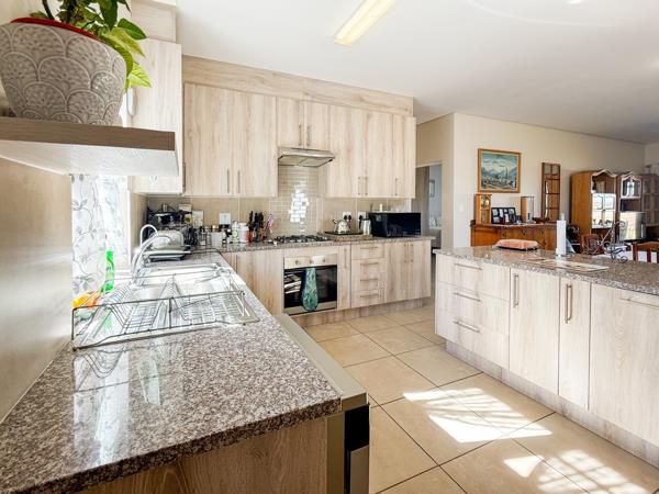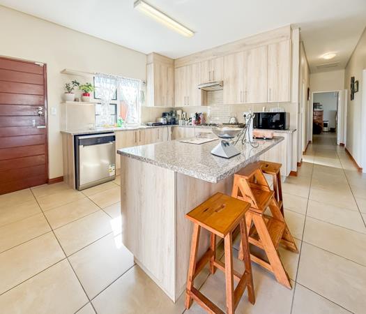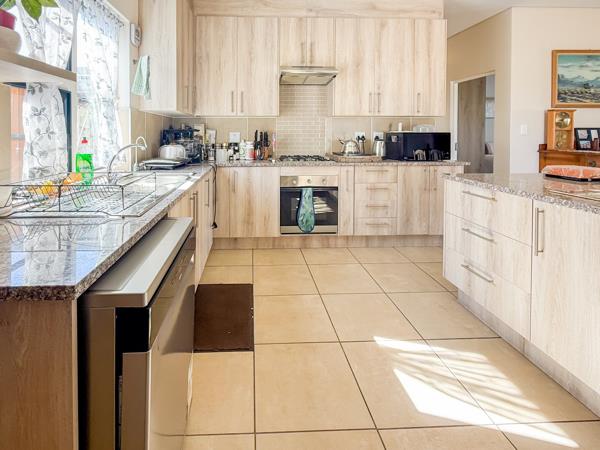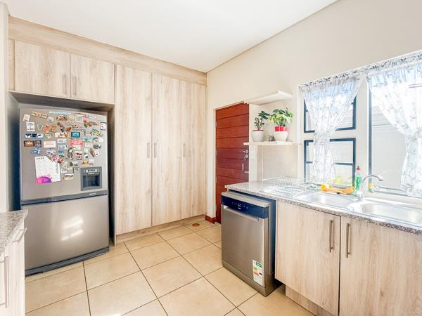 An absolute bonus are the added extras offering convenience and peace of mind. The geyser works on gas and solar There is also a 1000 lt jojo-water tank that is connected to the property. 12 Solar panels and inverter. 2 Security beams and security see-through mesh doors. No worries about watering the delightful, manicured garden as there is a fitted automated sprinkler system.