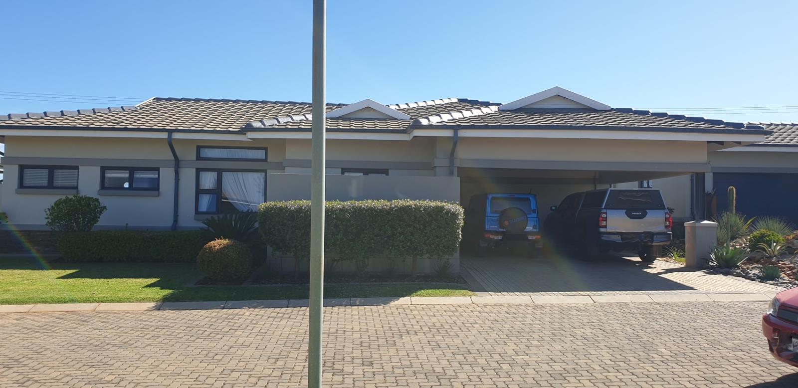 The double carport is in keeping with the aesthetics of Eastlands, which has a structure and a tiled pitched roof.