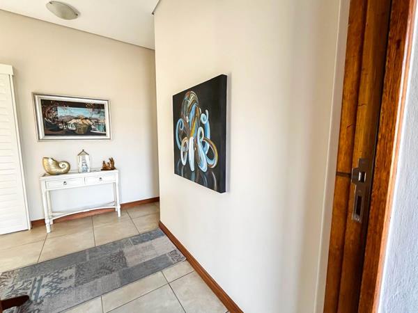 The lounge is a perfect setting for relaxation and entertaining, complete with an indoor braai, ideal for hosting intimate gatherings.