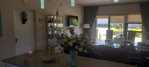 The property features a double garage with additional parking in front, complete with built-in cupboards for extra storage plus there is plumbing for a washing machine and a dryer. The courtyard can accommodate the daily used items that needs out of site, storage. The expansive lawn and thoughtfully designed garden, featuring a neat and manageable layout, add to the homes sense of space and serenity.