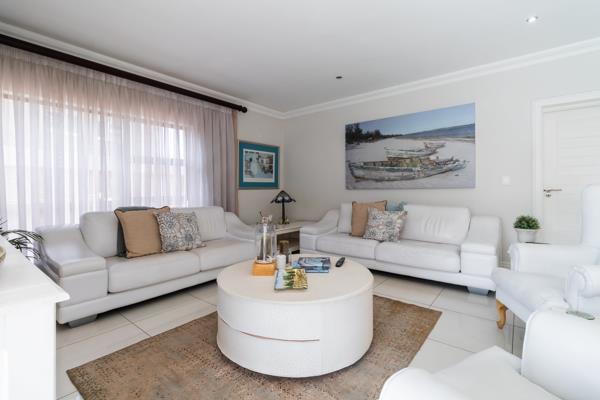 This home makes life a little easier: come home every night to a stunning view and a new kind of comfort. The house is modern, light, and airy. The ground floor living areas flow seamlessly from entrance to lounge -dining room and open plan kitchen. The lounge and dining room open with stacker doors onto a covered patio area with a built-in braai, a heated pool, and a deck area. The view will blow you away, especially at night with light reflecting off the water. The dining room has a gas fireplace and leads to a fourth bedroom or study and a gym. The kitchen is a chefs dream: well laid- out with ample cupboard space and glorious working surfaces. There is a guest bathroom and a bar on this floor and 4 garages with direct access into the house.
