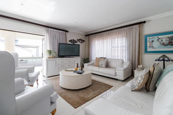 The upstairs area is home to 3 sized en-suite bedrooms. The main bedroom is huge and comes with an amazing view, a PJ lounge and access to an outside patio area. The main bedroom is under luxury carpet with a dressing room and a modern bathroom. The other 2 bedrooms have laminated flooring and en-suite bathrooms. There is a solar system installed for those load shedding days.