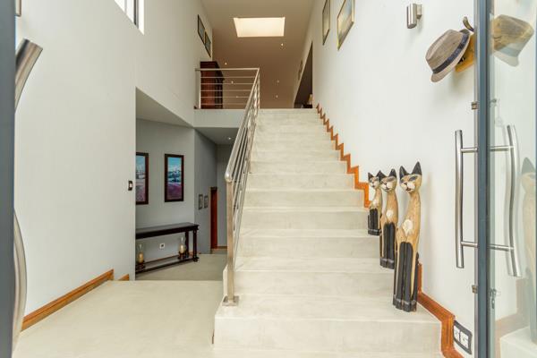 Additional features of this exceptional home include a double garage that accommodates four cars, a separate laundry room, three geysers with heat pumps for energy efficiency, a walk-in linen closet, and two storerooms.