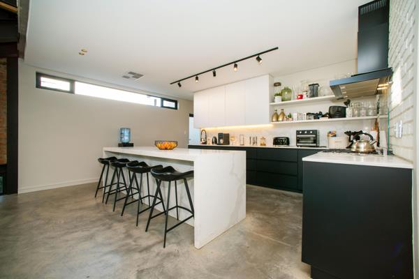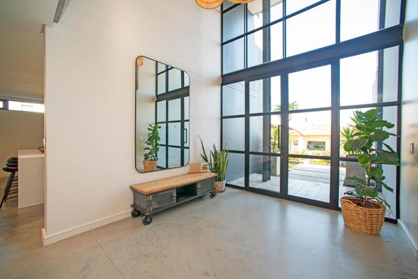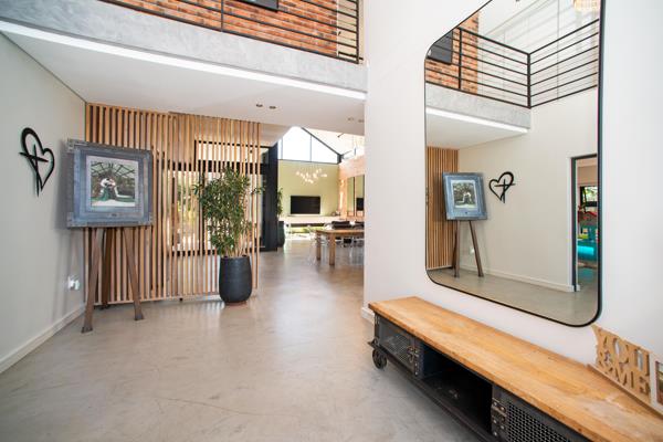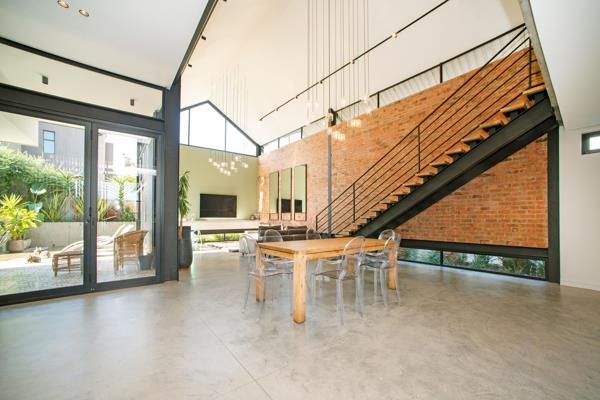 The expansive open-plan layout offers effortless flow between the chic lounge, elegant dining area, and state-of-the-art chefs kitchen, complete with a gas stove and separate scullery. A stylish wood-burning fireplace anchors the living space, while full-height stacking doors open to a covered entertainment patio featuring a built-in braai all overlooking a sparkling private pool and beautifully landscaped garden.