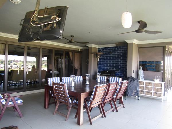 This stunning split-level home offers luxurious living with expansive views over the golf course. Upstairs features a cozy pajama lounge that opens onto a balcony, creating a perfect relaxation space. Three generously sized bedrooms, all en suite, provide comfort and privacy for the whole family.