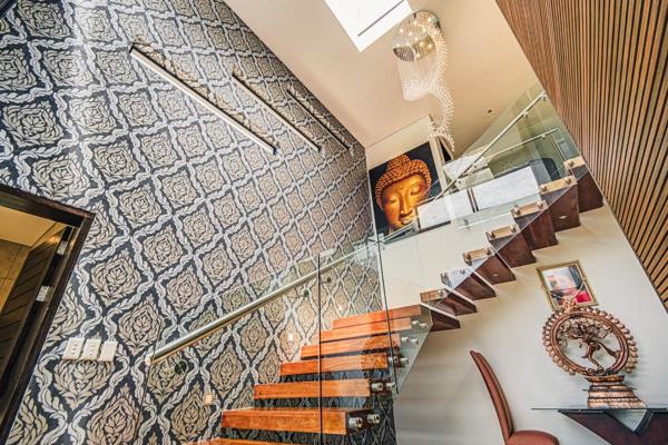 Be welcomed by a spacious, awe-inspiring entrance hall with its high ceilings, showpiece meticulously designed staircase that invites you into a world of elegant living. This residence resonates spacious open plan living which flows effortlessly from one formal lounge to the main formal lounge and dining area. Large double volume spaces and exceptional lighting compliments every room in the home.
