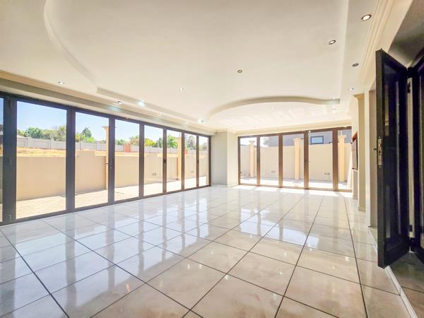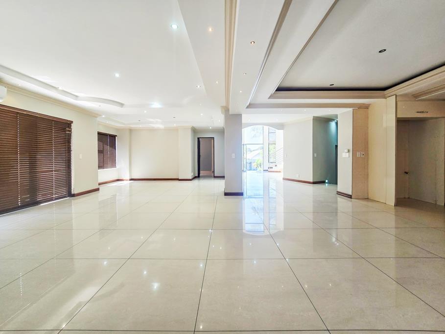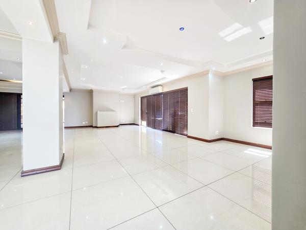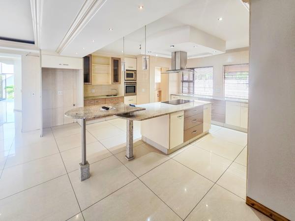 The open-plan lounge and dining areas flow seamlessly into a gourmet kitchen, featuring marble countertops, a walk-in pantry, a scullery, and high-end appliancesperfect for both everyday living and entertaining distinguished guests.