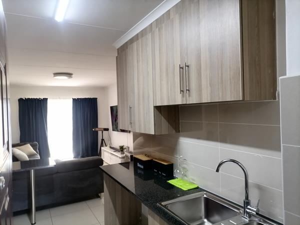 Open plan lounge, small dining table can fit, and modern kitchen, with pantry, space for a double door fridge, appliances, granite tops, extractor fan, etc, etc.