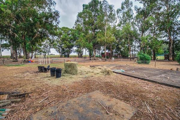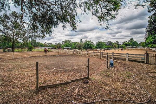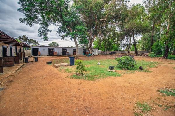 Outdoors, the property truly shines with its equestrian facilities, including multiple stable structures and fenced paddocks, perfect for housing horses. The extensive grounds feature a spacious grassy yard, mature trees providing natural shade, a dedicated children''s playground, and an unpaved driveway with ample parking. A covered outdoor area offers a perfect spot for relaxation, while an unmaintained swimming pool presents an exciting opportunity for restoration. The large erf size allows for significant landscaping potential, transforming the outdoor spaces into a private oasis.