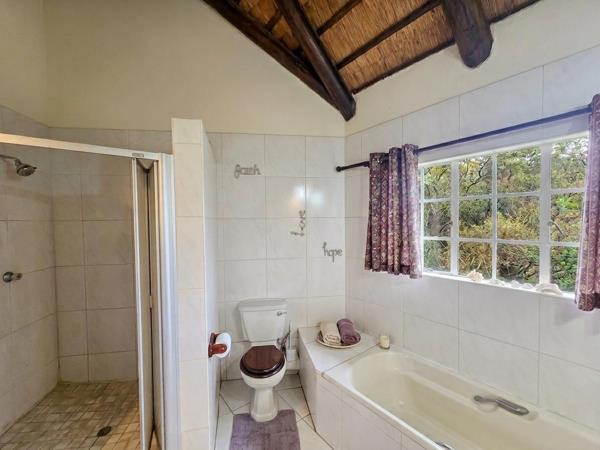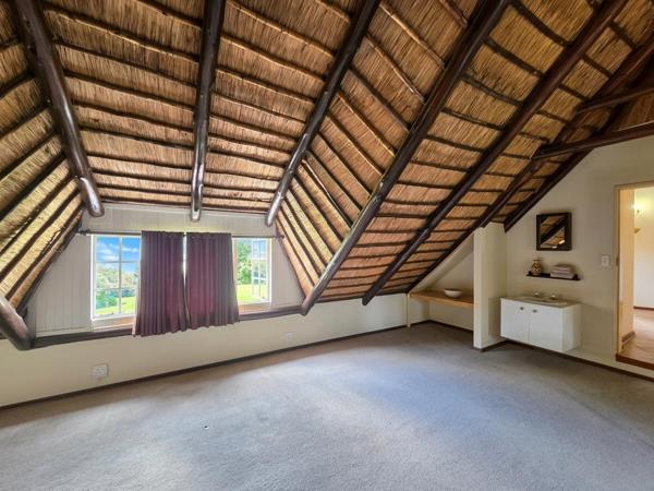 The Residence: A beautiful double-storey thatched manor featuring 4 specious bedrooms, 2.5 bathrooms, two lounges with a fireplace, a large kitchen and swimming pool.