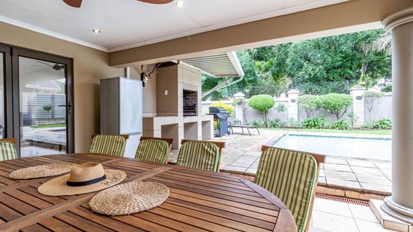 Step inside and be greeted by a super-spacious open-plan lounge and dining area, designed for effortless living and entertaining. Aluminium stacker doors invite seamless flow to the semi-enclosed entertainment room, complete with a built-in braai and plumbed prep area. From here, you overlook a sparkling swimming pool and relaxing Jacuzzi, a perfect weekend retreat.