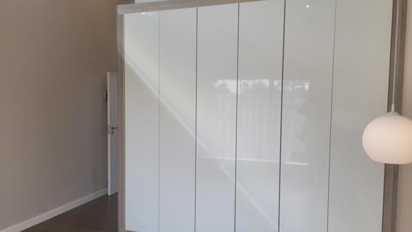 Two tiled bedrooms with glossy finished, handleless, built in cupboards.