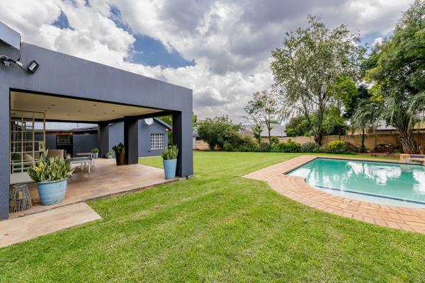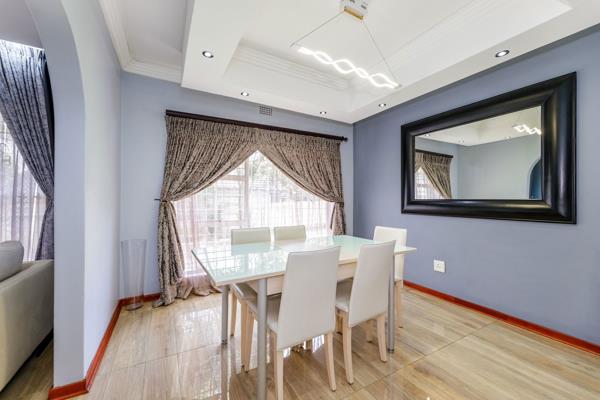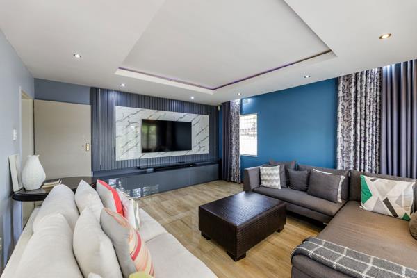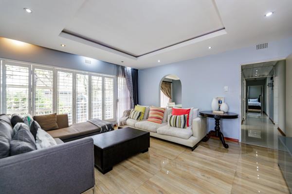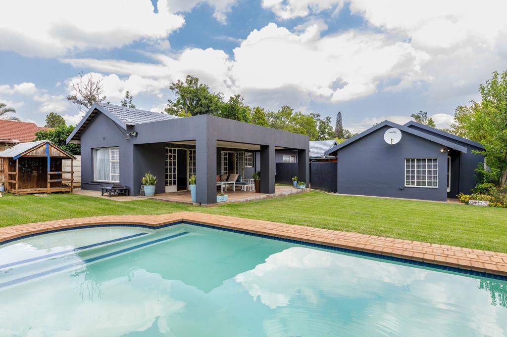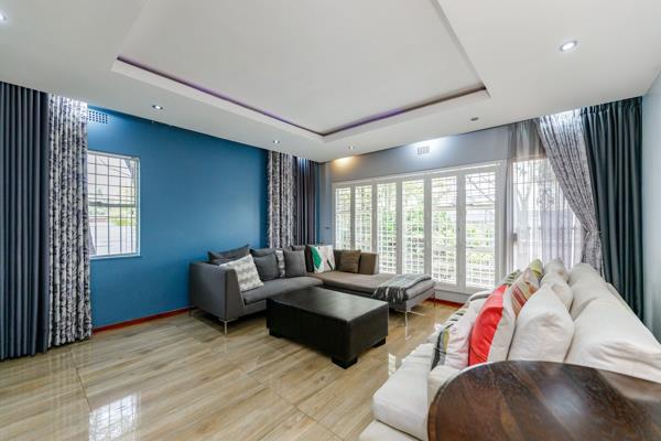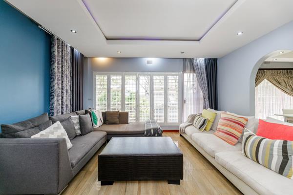 Modern family home on a spacious erf with an inverter and a flatlet.. The house features a comfortable lounge, a semi-open plan dining area, and a study at the front. Modern tiles and stylish ceiling designs can be found throughout. The lounge and dining area flow into each other, both offering views of the private garden. A great feature of the lounge is the built in TV display cabinets and the American shutters to tie it all together. The kitchen, located next to the dining room, is well-equipped with plenty of cupboard space, granite countertops, a gas stove, and room for a double fridge. The adjacent scullery includes a double sink and access to the courtyard and garages.