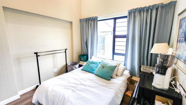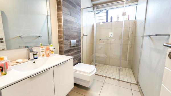 Main en-suite with raised angled ceilings in the bedrooms, as well as stunning laminate flooring, handle-less high gloss built-in cupboards and Ceasarstone window sills.