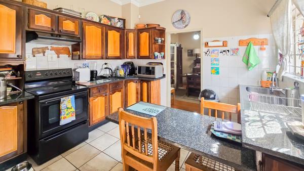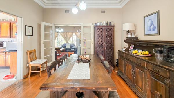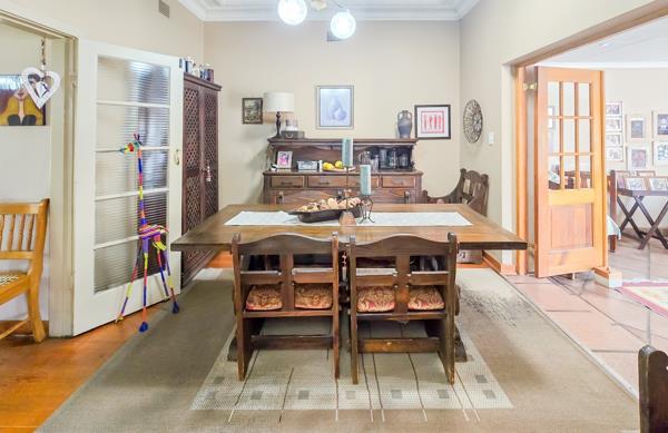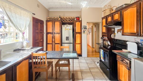 The home showcases timeless features including pressed ceilings, Oregon pine floors, and a solid handcrafted imbuia and yellowwood kitchen.