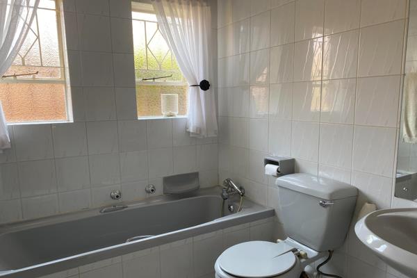 The beautiful solid wood kitchen features ample cupboard space, a small pantry, and a back door leading out to a charming private patio, perfect for quiet mornings or weekend braais.