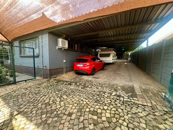 Discover this charming 3-bedroom, 2-bathroom residence nestled in the suburban heart of Farrarmere, Benoni. This property offers a generous Erf size of 1190 sqm, providing ample space for comfortable living and outdoor enjoyment. The kerb appeal is enhanced by a modern perimeter wall featuring a blend of brick and grey plastered sections, topped with fencing for added security, and complemented by a sturdy access gate and paved pedestrian walkway.