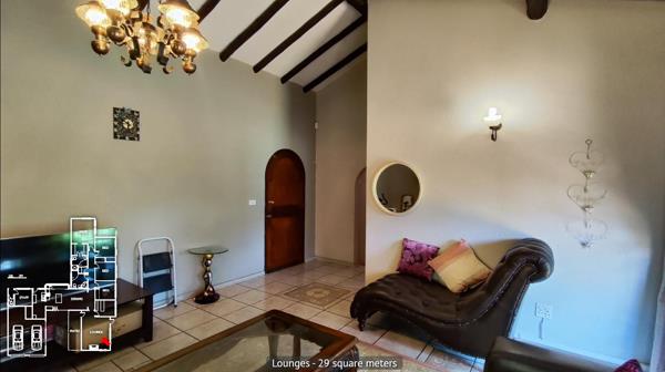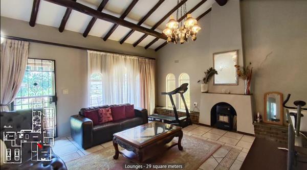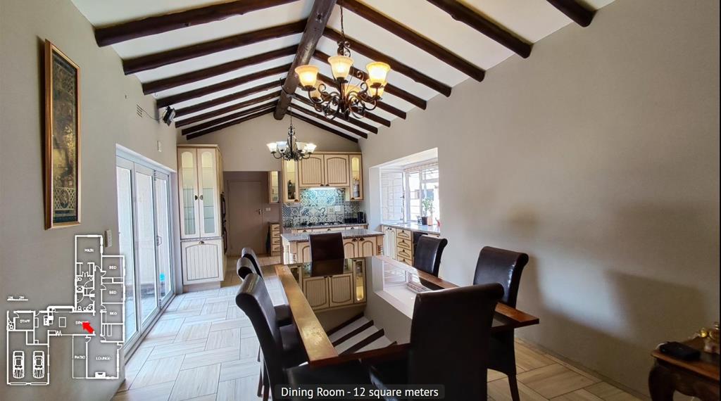 Flowing from the kitchen is the open-plan dining areaideal for intimate mealswhile the lounge is tucked down a short passage for added privacy. The lounge opens onto the front garden and includes a wood-burning fireplace unused and an adjoining entertainment room with high ceilings, fitted solid-wood bar, and comfortable carpeting.