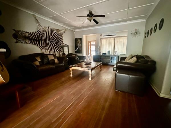 Outdoor living is a highlight, with extensive paved areas perfect for entertaining, including a dedicated braai room. The property offers a single garage and an impressive six additional parking spaces, ensuring ample accommodation for vehicles. Practical amenities include staff quarters, a garden, and robust security features such as burglar bars, a security gate, and an access gate, providing peace of mind.