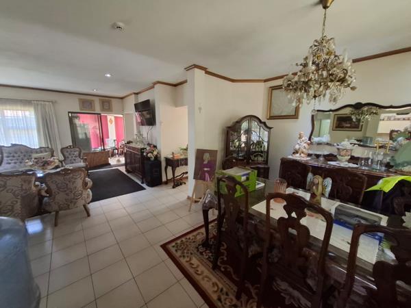 Discover this charming residence nestled in the established suburb of Farrarmere, Benoni. The property immediately impresses with its face brick exterior, well-maintained, mature garden, and secure frontage. A paved driveway provides ample parking, leading to a double carport and two garages, all within a totally walled perimeter enhanced by electric fencing for peace of mind.