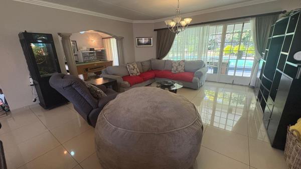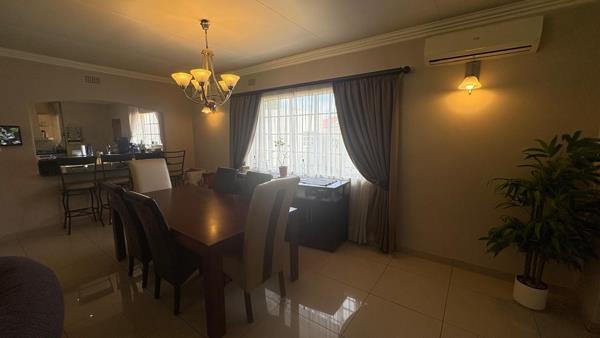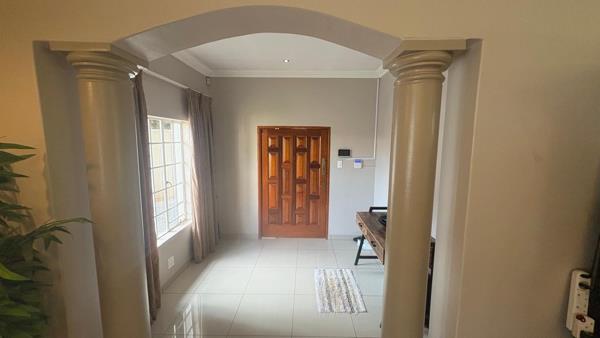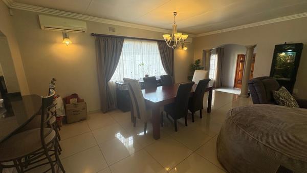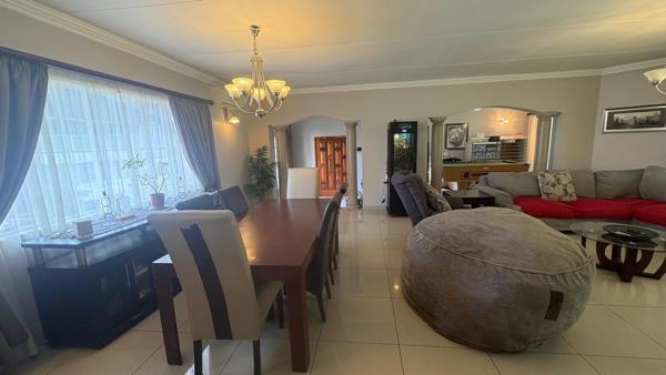 This home offers a spacious and functional layout designed for comfortable living. The open-plan living and dining areas are adorned with durable tiled flooring and feature decorative architectural elements such as arches and pillars, creating a sense of flow. The property includes two distinct lounges and a dedicated dining room, alongside a well-appointed kitchen, catering to various lifestyle needs.