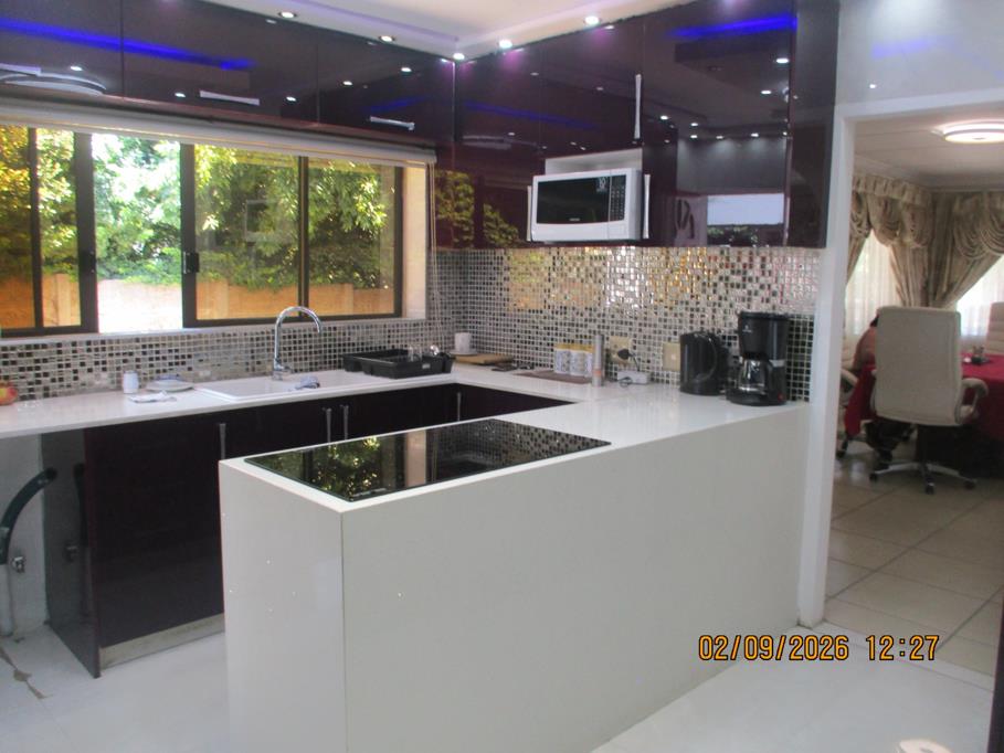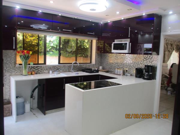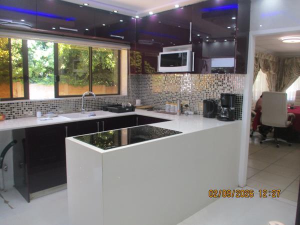 Immaculate family home in a sought-after area, facing the Homestead Dam. All bedrooms feature built-in headboards, with a main en-suite and an additional modern bathroom.