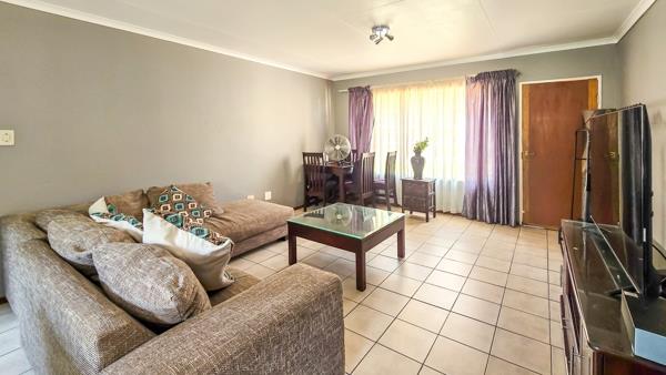 All three bedrooms are well-sized with built-in cupboards, while the two bathrooms provide convenience for both family and guests. A double carport ensures secure parking, with additional visitor parking available within the complex.