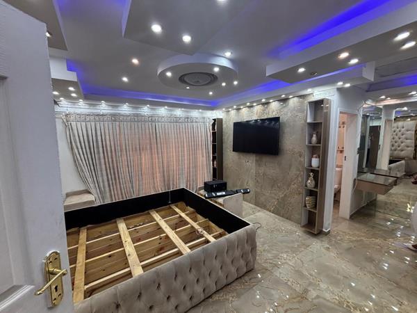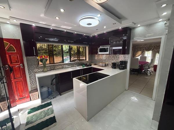 Outside, the home truly becomes an entertainers dream. A beautiful lapa with a built-in braai overlooks the sparkling swimming pool, while the front garden features a fully equipped bar area and fire pit, perfect for relaxing evenings with friends and family.