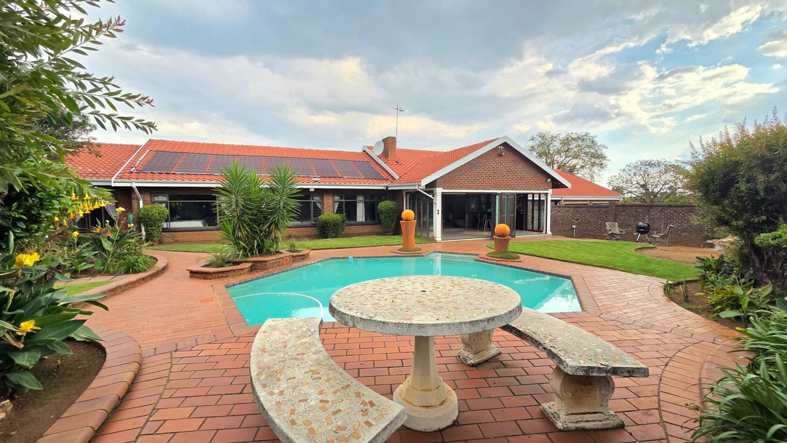 This super family home is low maintenance with aluminum windows and the Polycarbonate burglar bars. Excellent security ranging from CCTV cameras, alarm system, external beams