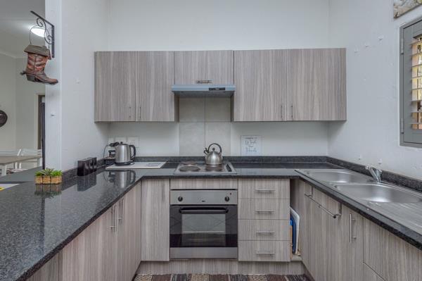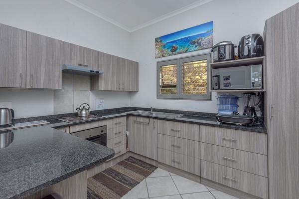 Situated on the top floor, it offers open plan living with two bedrooms and two bathrooms. The enclosed patio with built in braai, boast stacker windows, which promises you a lovely entertainment area.