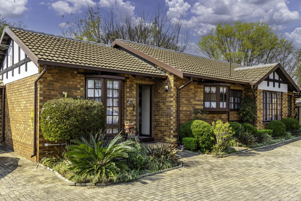 Cottage-pane windows add character throughout, while security beams in and out and an alarm system offer peace of mind. Outside, enjoy lush gardens, two single lock-up garages, and ample visitor parking.