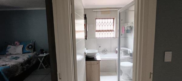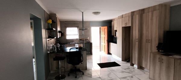 Offers 2 generously sized bedrooms with built-in cupboards and a modern full bathroom with granite-top vanity. The tiled interior features a neat, contemporary kitchen with ample cupboard space, flowing into a spacious open-plan lounge.