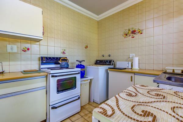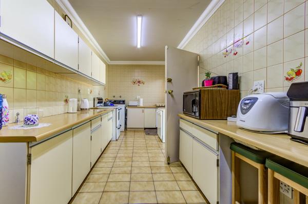 The spacious kitchen features ample cupboard space and flows beautifully into a large lounge and dining room, creating a welcome atmosphere for family living and entertaining.
