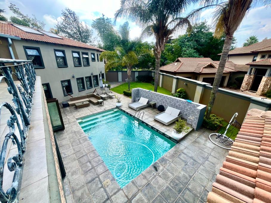 Step outside, and youll be greeted by an impressive outdoor entertainment area featuring a sparkling heated swimming pool. The lush, well-maintained gardens are complemented by auto irrigation and a borehole, ensuring beauty and sustainability. Perfect for those who love to entertain outdoors or simply enjoy a relaxing afternoon by the pool, this space is designed for comfort and relaxation. The entertainement area links in seamlesly to the home and large patio