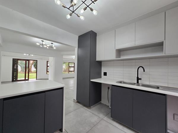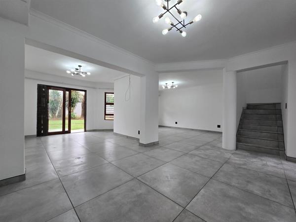 Experience modern elegance and comfortable family living in this beautifully renovated double-story home, set within a secure estate. The home welcomes you with a spacious double garage and peace of mind provided by 24-hour security, electric fencing, and access control. Inside, a sleek black-and-white kitchen serves as the heart of the home, complemented by tiled floors that flow seamlessly through the open-plan lounge and dining area. The layout opens to a covered patio, perfect for entertaining or relaxing outdoors, while thoughtful additions like under-stair storage & a small laundry yard enhance everyday convenience.