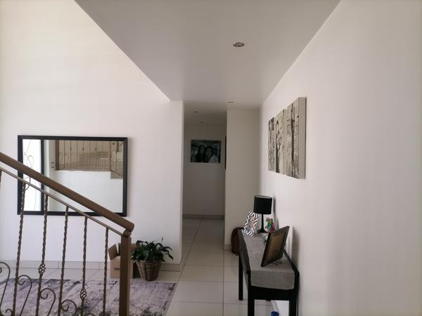 Situated in the sought after complex of Montebello and close to all amenities, such as schools, hospitals, shopping malls, highways, sports fields etc, etc, this spacious, modern home offers 4 large bedrooms, one downstairs and 3 upstairs of which one can be utilised as a study balcony views, 2 full bathrooms of which one is en-suite, guest toilet plus shower, open plan entrance hall, leading into an open plan lounge, dining room and extremely modern kitchen, with combo scullery laundry.