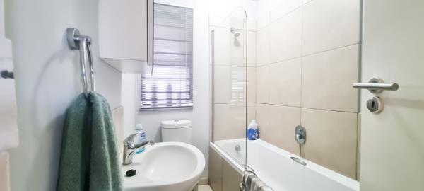 Relax in the well-sized bathroom, designed with a stylish bathtub, sleek vanity basin, and a contemporary toilet your perfect retreat after a long day.