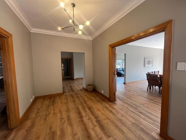 The home boasts four oversized bedrooms with ample built-in cupboard space. The luxurious main bedroom includes a stunning ensuite bathroom. A second modern bathroom and a guest toilet cater to family and guests alike.