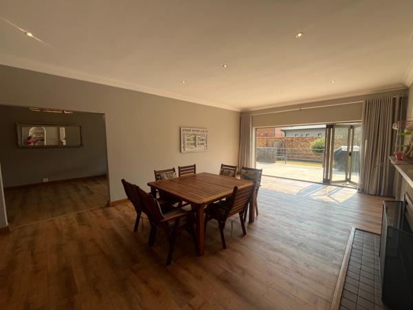Step into a generous entrance hall that flows effortlessly into a large, light filled family room with stacking doors opening to a beautifully maintained garden and expansive patio, perfect for indoor and outdoor living and entertaining. A second lounge/TV room also features stacking doors leading directly to the patio and garden, creating seamless flow and relaxation space for the whole family.