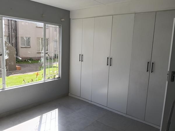 This fully renovated ground floor apartment is ideal for anyone, a young family or single person, and even retirees, and lastly even a serious investor. It is the last unit on the ground floor of the block, right next to the huge kids play area and close proximity to the pool and covered parking area. The brand new kitchen is open plan and has a new hob and undercounter oven, space for a fridgefreezer and one appliance and has a double basin. The living area is beautifully tiled and spacious. The apartment has two spacious bedrooms with lots of built-in cupboards, modern, newly tiled floors and large windows. The new bathroom is half tiled with both a bath, shower over the bath, basin and toilet. Even the bathroom fittings are brand new. Both external doors have security gates. Behind the unit is a small garden. There is a covered, secure parking for one vehicle in front of the unit and the complex has plenty guest parking. Electricity is pre-paid. There is a large pool and kiddies play area in the complex, kept in pristine condition. The unit is very well priced, the seller is serious and everything is brand new, no work required. This unit is literally brand new. This unit will sell quickly. Even the entire complex has just been painted on the outside.